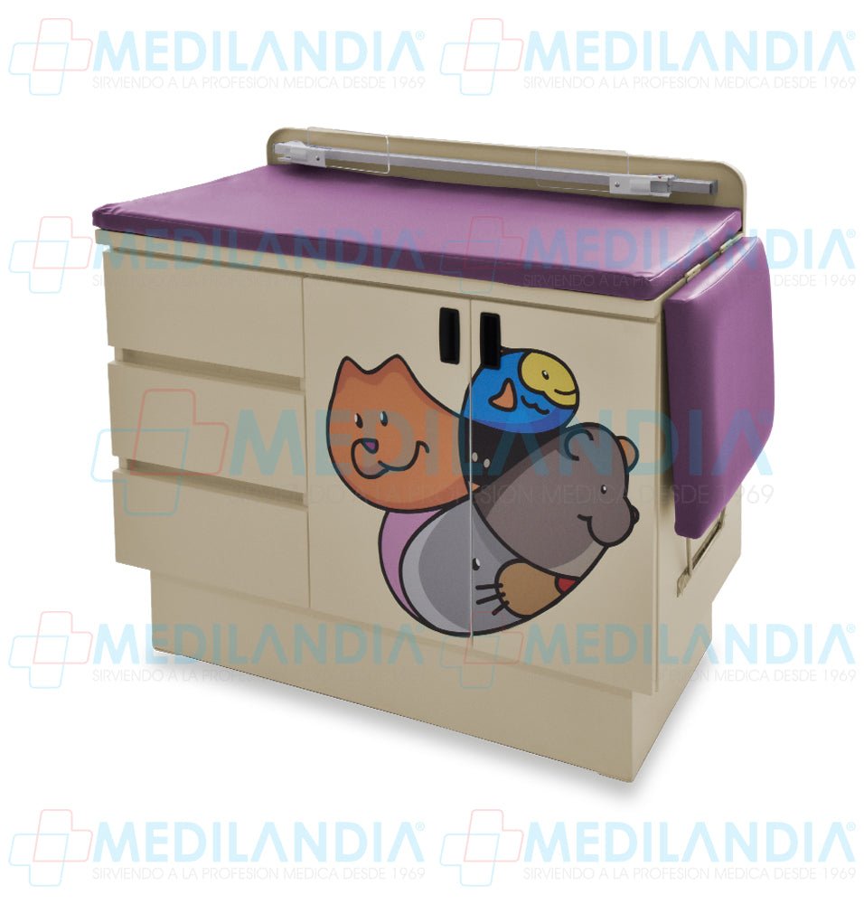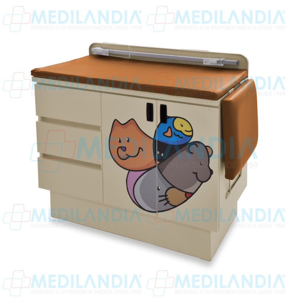 Mesa para exploración pediátrica con gabinete y cenefa